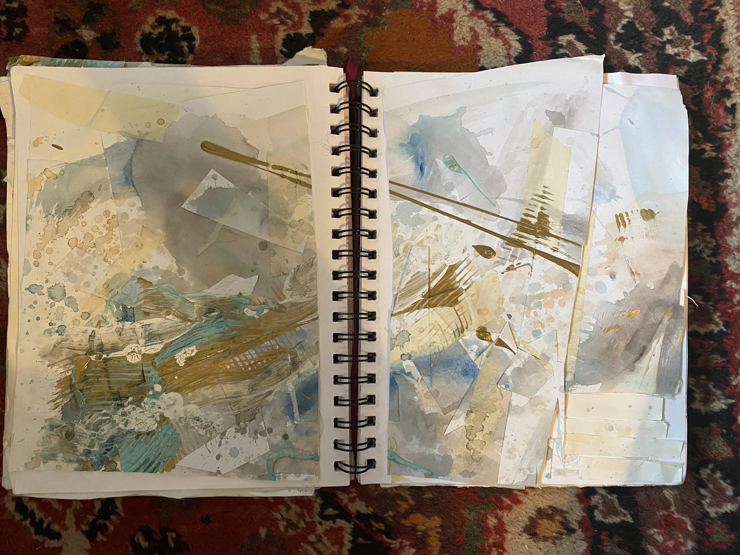 The following pieces are part of the art-journaling practice that I began in 2004 and have continued in various ways since. Making art in the less-precious space of a journal has offered me a place to use art as somatic expression, to learn to play, experiment, and speak in privacy. Art-journaling is an improvisational practice and an act of self-exploration.
